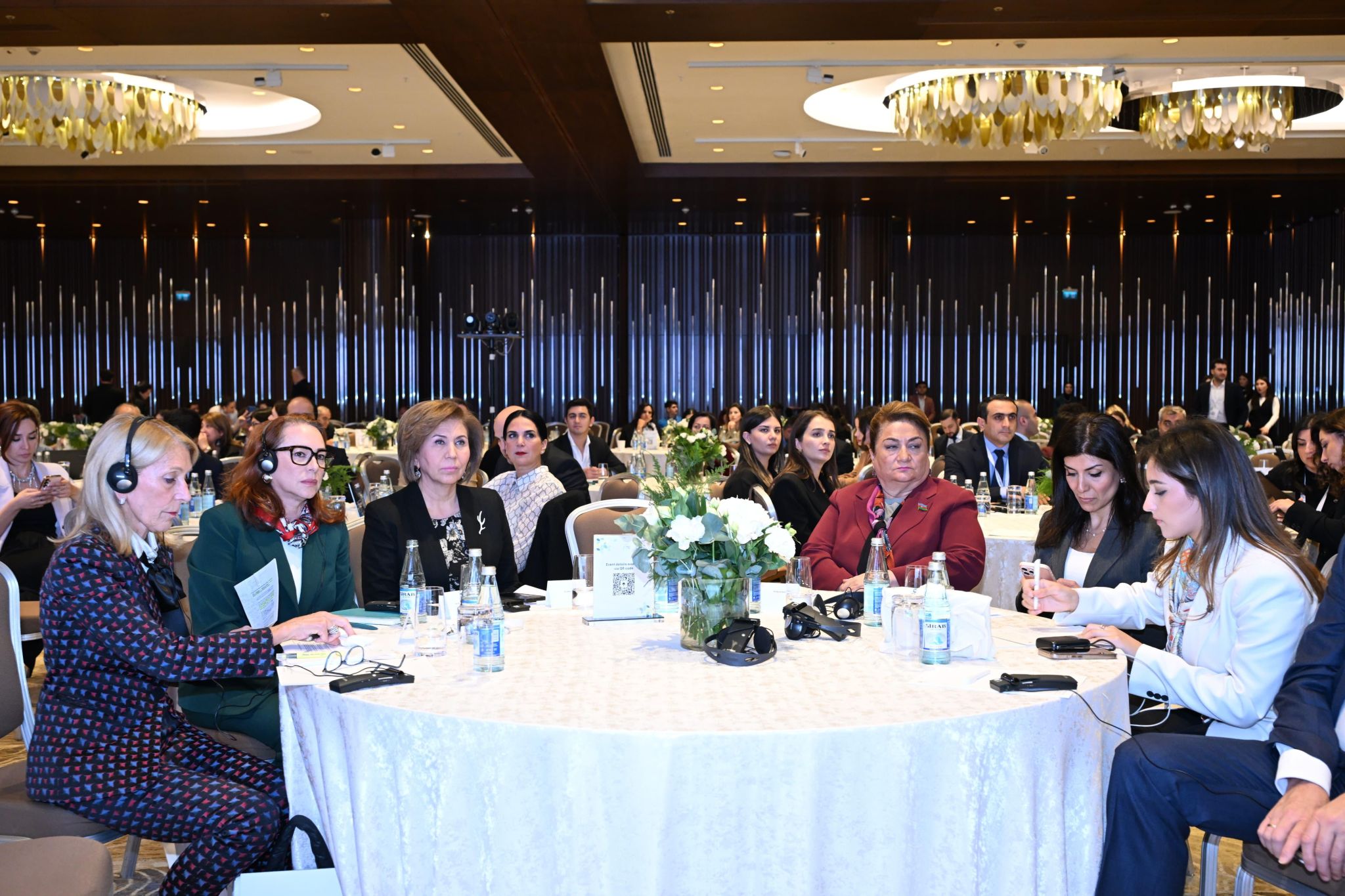 B.Muradovanın sözlərinə görə, son beş ildə minlərlə qadın maliyyə savadlılığına və məşğulluğa cəlb olunub: “Son 5 ildə dövlət, özəl və ictimai sektor nümayəndələrinin yaratdığı sinerji nəticəsində yalnız iqtisadi sahədə 10 minlərlə qadın sahibkarlıq təşəbbüslərinə dəstək alıb, onların bir qismi yaşıl iqtisadiyyat və ekoloji layihələrdə fəaliyyət göstərib. Regional mərkəzlər şəbəkəsi vasitəsilə ölkənin əksər bölgələrində minlərlə qadın peşə hazırlığına, maliyyə savadlılığına və məşğulluq imkanlarına yiyələnib”.