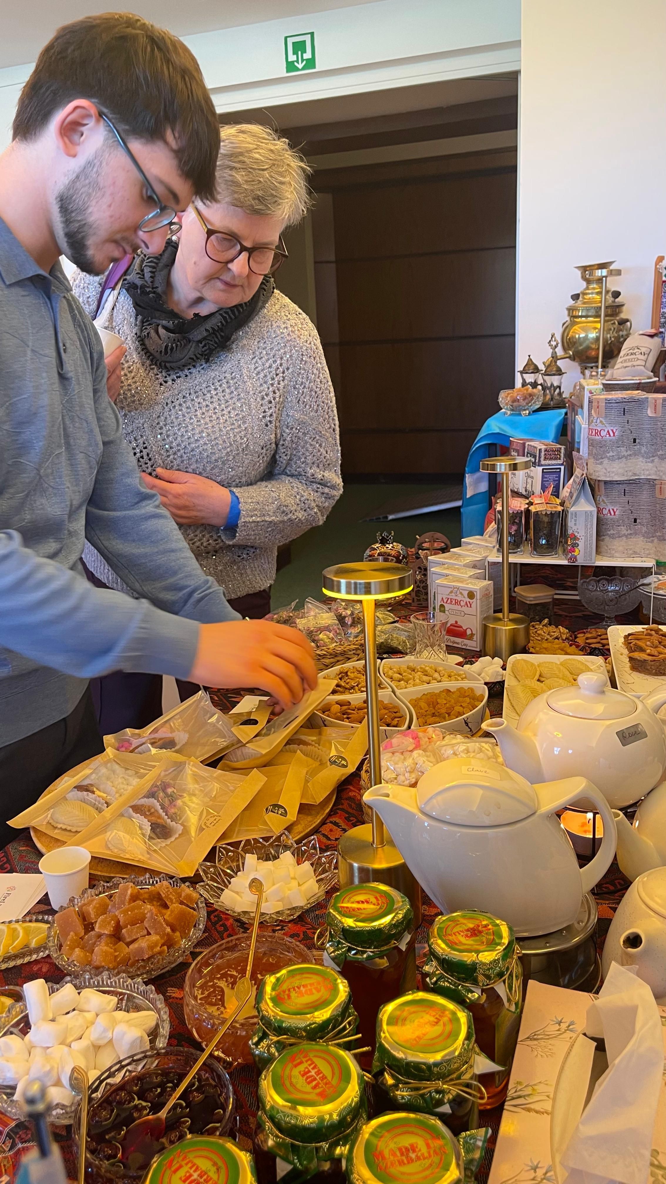 Azərbaycan stendində müxtəlif dadlı çay növləri ilə yanaşı milli mətbəximizin ləziz təamları ziyarətçilərə təqdim edilib. Qonaqlar milli şirniyyatlarımızın hazırlanma prosesini maraqla izləyib və Azərbaycan çay mədəniyyətinin zənginliyinə heyran qalıblar.