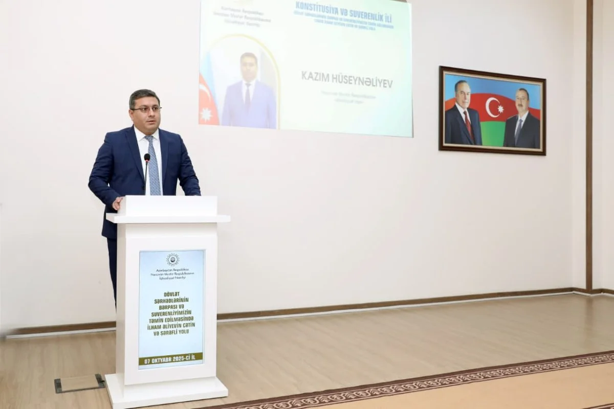 Naxçıvan Muxtar Respublikasının iqtisadiyyat naziri Kazım Hüseynəliyev çıxışında ölkəmizdə 2025-ci ilin “Konstitusiya və Suverenlik İli” elan olunmasının əhəmiyyətindən danışıb, Azərbaycanın yeni inkişaf mərhələsinə qədəm qoymasını və qüdrətli bir ölkəyə çevrilməsini diqqətə çatdırıb. Nazir iqtisadi müstəqilliyin əldə olunması, sahibkarlığın inkişafı, özəl sektorun formalaşmasında ulu öndər Heydər Əliyevin xidmətlərindən, həmçinin bu siyasətin Prezident İlham Əliyevin rəhbərliyi ilə uğurla davam etdirilməsi, sahibkarlığa dəstək məqsədilə qanunvericiliyin təkmilləşdirilməsi, inzibati prosedurların sadələşdirilməsi və digər həyata keçirilən islahatlar barədə məlumat verib.