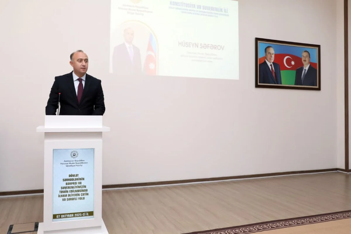 Naxçıvan Muxtar Respublikasının İqtisadiyyat Nazirliyində 2025-ci il–“Konstitusiya və Suverenlik İli” çərçivəsində “Dövlət sərhədlərinin bərpası və suverenliyimizin təmin edilməsində cənab İlham Əliyevin çətin və şərəfli yolu” mövzusunda mərasim keçirilib.