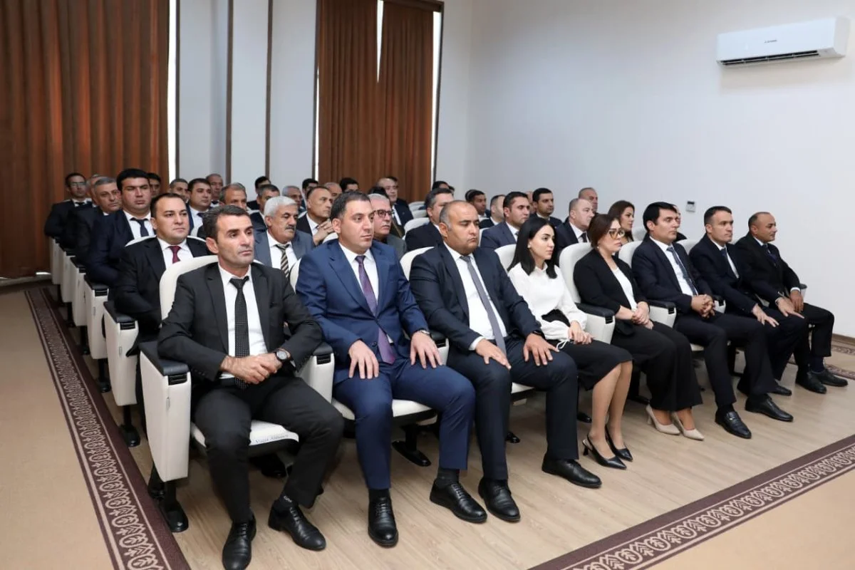 Əvvəlcə toplantı iştirakçıları nazirliyin inzibati binasında ümummilli lider Heydər Əliyevin büstü önünə gül dəstələri qoyublar.