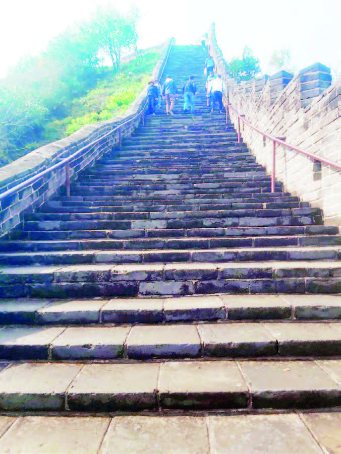 Səddin dik pilləkənlərilə yuxarı qalxmaq o qədər də asan məsələ deyil. Qrupumuzdakı həmkarlarım ilə bu əzəmətli səddin pik nöqtəsini ancaq yarıyolda dayanaraq seyr edə bildik. Amma müşahidə məntəqələrindən birinə baş çəkərək kosmosdan da göründüyü iddia edilən əzəmətli istehkamın uzandığı yola nəzər salmağı bacardıq. Möhtəşəm mənzərə idi! Səddin uzandığı yola nəzər yetirərkən, qədim Çin insanının qüdrətinin, zəkasının və inadının gücünə heyran olmaya bilmirsən. Böyük Çin Səddinə qalxmaq, sadəcə, tarixi bir abidəni görmək deyil, sanki keçmişlə üz-üzə gəlmək deməkdir. Bu möhtəşəm tikili qarşısında dayananda insan özünü zamanın və məkanın sərhədlərində hiss edir. Qədim dövrlərin nəfəsi, daşlara hopmuş min illərin sükutu səni əhatə edir. Hər addımda bir əfsanənin izi, hər daşın altında bir insanın əli, bir xalqın inad və iradəsi duyulur.
