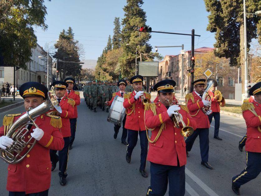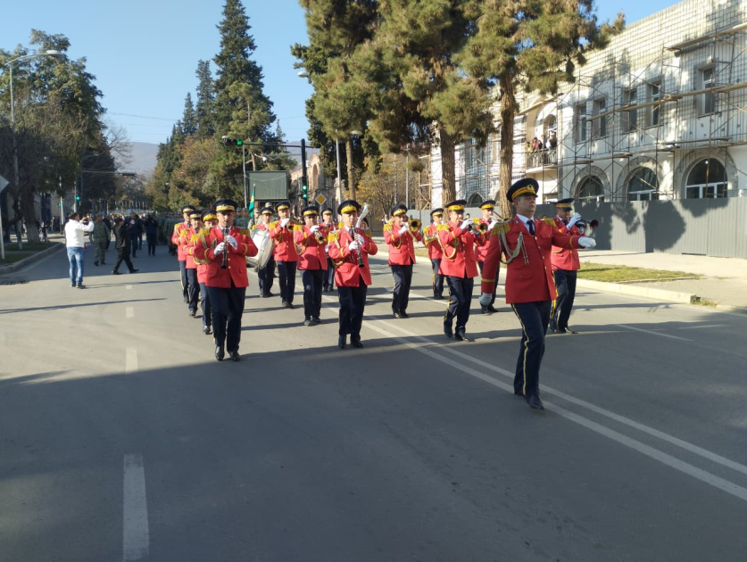 Xankəndi şəhərində, Ağdərə və Xocalı rayonlarında Bərpa, Tikinti və İdarəetmə Xidmətinin ictimaiyyətlə əlaqələr şöbəsindən AZƏRTAC-a verilən məlumata görə, şəhərin mərkəzi küçəsində hərbi orkestrlərin müşayiəti ilə təşkil olunan yürüş bayram ab-havası yaradıb. Azərbaycan Silahlı Qüvvələrinin hərbi orkestri tərəfindən yürüş boyu vətənpərvər musiqilər səsləndirilib.