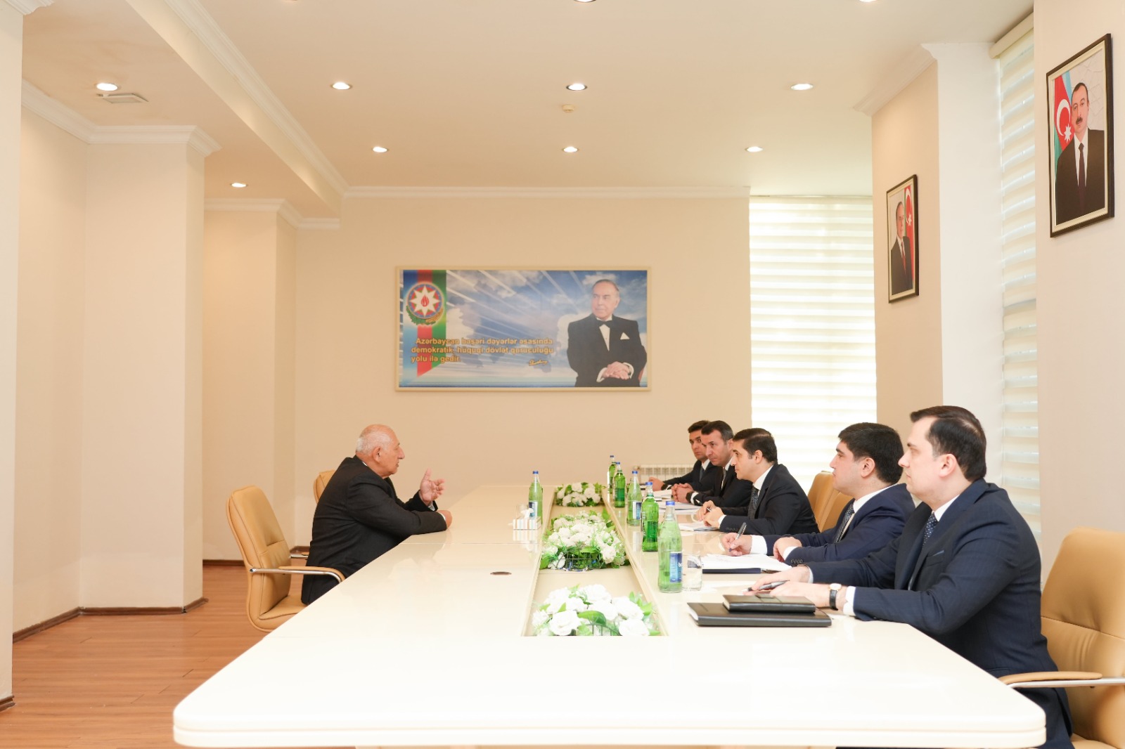 Qəbuldan əvvəl nazir Ümummilli Lider Heydər Əliyevin abidəsini ziyarət edib və önünə gül dəstəsi qoyub.