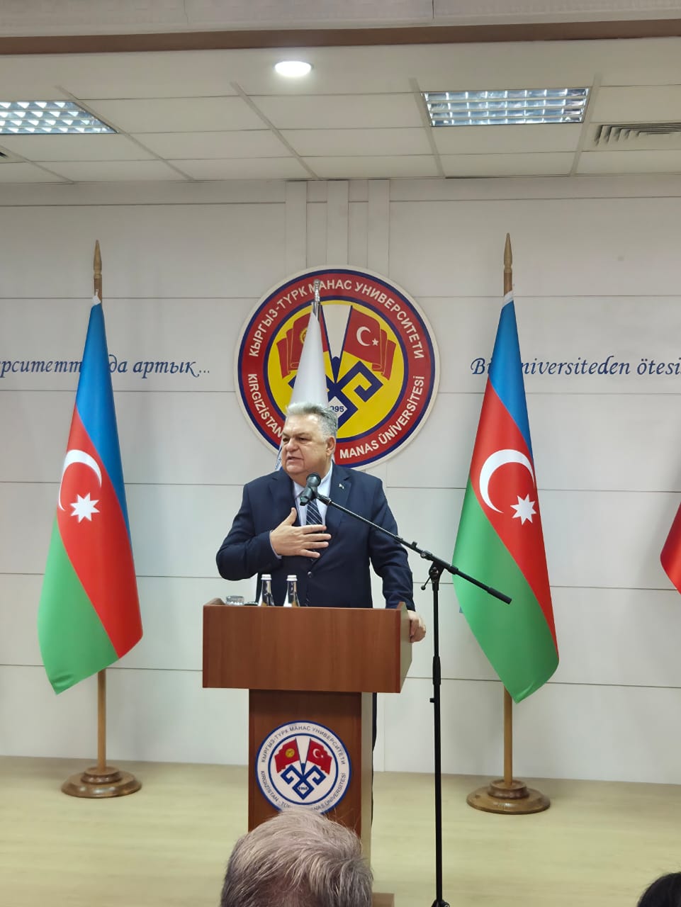 Açılış nitqi ilə çıxış edən Qırğız-Türk Manas Universitetinin prorektoru İsmet Altıntaş Azərbaycan xalqının Vətən müharibəsində əldə etdiyi tarixi qələbənin regionda sülh, təhlükəsizlik və əməkdaşlıq üçün yeni imkanlar yaratdığını vurğulamışdır. O qeyd etmişdir ki, bu Qələbə yalnız Azərbaycan üçün deyil, bütün türk coğrafiyası üçün milli ləyaqətin və birliyin simvoluna çevrilmişdir. Prorektor həmçinin Qarabağın azad edilməsi ilə türk dünyasının siyasi və mənəvi xəritəsində tarixi ədalətin bərpa olunduğunu bildirmişdir.