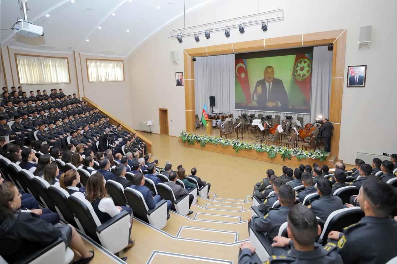 Kursantlar Hərbi Kollecin marşını səsləndirib, Naxçıvan Dövlət Universitetinin Simfonik orkestri vətənpərvərlik və qələbə ruhlu musiqi nömrələri təqdim ediblər.