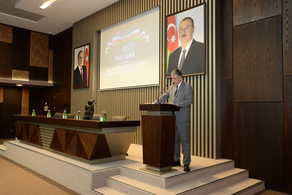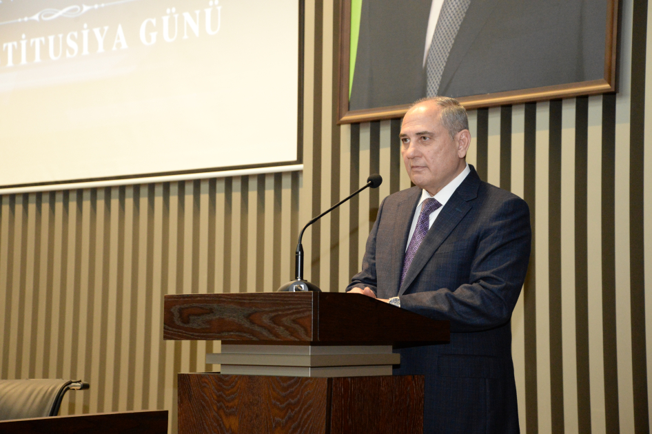 Çıxış edən iştirakçılar bildiriblər ki, müstəqil Azərbaycan Respublikasının Konstitusiyası ölkəmizdə demokratik, hüquqi, dünyəvi dövlət quruculuğu prosesinə hüquqi baza yaradıb və onun inkişafına güclü təkan verib. Azərbaycanın müasir tarixində dövlətçilik ənənələrinin bərpası və möhkəmləndirilməsi məhz Ümummilli Lider Heydər Əliyevin adı ilə bağlıdır. Ulu Öndərin cəsarətlə həyata keçirdiyi əsaslı islahatlar respublikamızı inkişaf yoluna çıxarmaqla yanaşı, qanunun aliliyini təmin edən, hüquqi, dünyəvi dövlət quruculuğuna yol açan yeni milli Konstitusiyanın hazırlanmasına və qəbuluna şərait yaradıb. 1995-ci ildə qəbul olunmuş Azərbaycan Respublikasının Konstitusiyası müasir dövlətçiliyimizin hüquqi əsaslarını təşkil edən, ölkənin müstəqilliyini hüquqi cəhətdən təsdiqləyən fundamental sənəd kimi tarixə düşüb. Ulu Öndər Heydər Əliyevin bilavasitə rəhbərliyi ilə hazırlanmış bu sənədin hər bir maddəsi Ümummilli Liderin Azərbaycanın gələcəyi ilə bağlı strateji baxışlarının təcəssümüdür. Prezident İlham Əliyevin uğurlu daxili və xarici siyasəti nəticəsində Konstitusiyada təsbit olunan bütün müddəaların təmin olunduğu diqqətə çatdırılıb. Vurğulanıb ki, Prezident İlham Əliyevin 2003-cü ildə ali vəzifəyə seçildiyi dövrdən başlayaraq qarşısına qoyduğu strateji hədəf Ali Qanunumuzun müddəalarının bütün ölkə ərazisində təmininə yönəlib, Vətən müharibəsi və ardınca antiterror əməliyyatı ilə Azərbaycan bütün ərazisində suverenliyini tam bərpa edib.