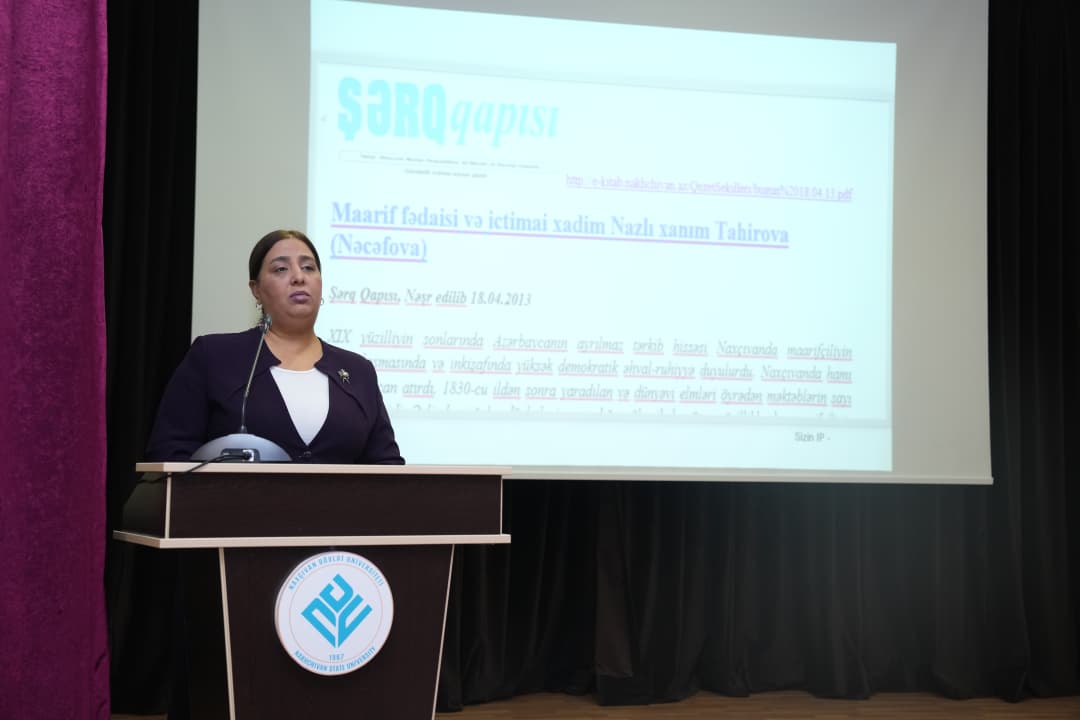 Naxçıvan Dövlət Universitetində Naxçıvanda ilk qızlar məktəbinin yaradıcısı, Naxçıvan MSSR Mərkəzi İcraiyyə Komitəsinin deputatı, Naxçıvan MSSR-in Əməkdar müəllimi, tanınmış maarifçi Nazlı xanım Nəcəfovanın 135 illik yubileyinə həsr olunmuş konfrans keçirilib. Bu haqda “Xalq” qəzetinə universitetin mətbuat və ictimaiyyətlə əlaqələr şöbəsindən məlumat verilib.
