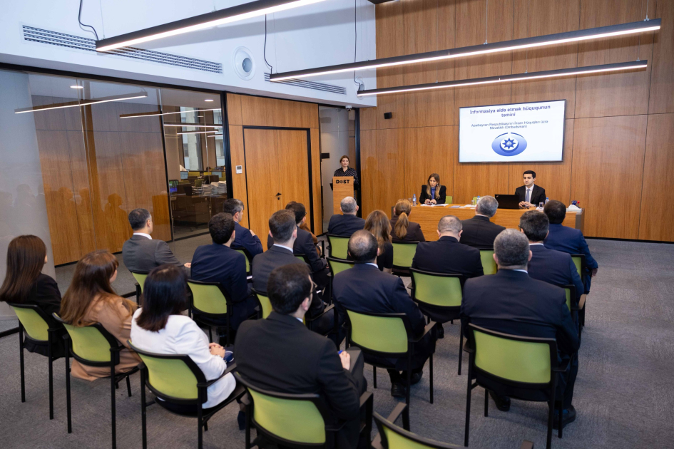 Azərbaycan Respublikasının İnsan hüquqları üzrə müvəkkilinin (ombudsmanın) təşəbbüsü ilə Ombudsman Aparatının əməkdaşları tərəfindən Əmək və Əhalinin Sosial Müdafiəsi Nazirliyinin tabeliyindəki Dayanıqlı və Operativ Sosial Təminat (DOST) Agentliyinin vəzifəli şəxsləri və əməkdaşları üçün “İnformasiya əldə etmək hüququnun müdafiəsi” mövzusunda təlim keçirilib.