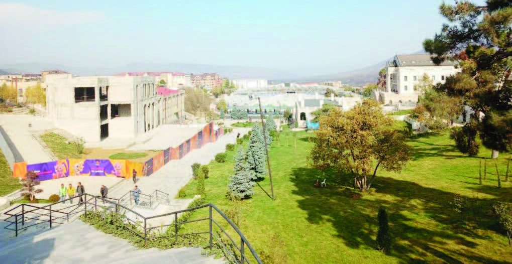 Avtobusumuz Qarabağ Universitetinin yanından keçib şəhərin baş meydanında dayandı. Xankəndi şəhərində, Ağdərə və Xocalı rayonlarında Azərbaycan Respublikası Prezidentinin xüsusi nümayəndəliyinin qarşısındakı meydandan ilk dəfə gördüyümüz binaları seyr etdik, xatirə şəkilləri çəkdirdik. Aşağıda 2023-cü ilin dekabrnda təmirdən sonra istifadəyə verilən Xankəndi stadionu diqqətimizi çəkdi.