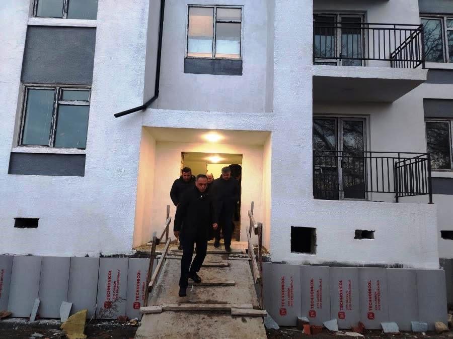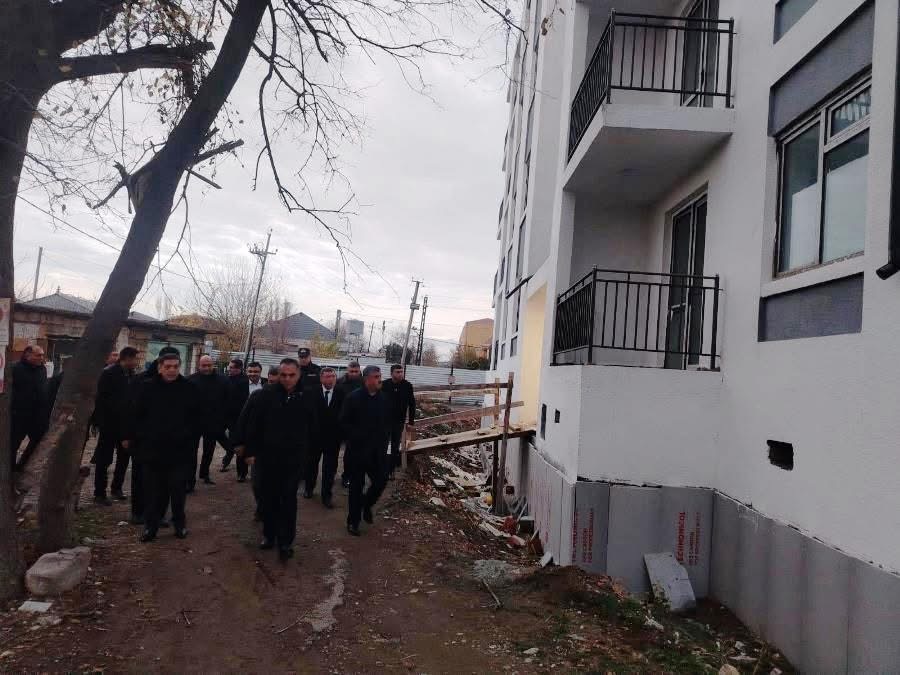 Goranboy rayon İcra Hakimiyyətinin başçısı Məhərrəm Quliyev, rayonun aidiyyəti rəhbər şəxsləri ilə birgə, Goranboy şəhərinin Cəfər Cabbarlı küçəsində yerləşən 4 mərtəbəli, 16 mənzilli yaşayış binasında aparılan son tamamlama işləri ilə yerində tanış olub.