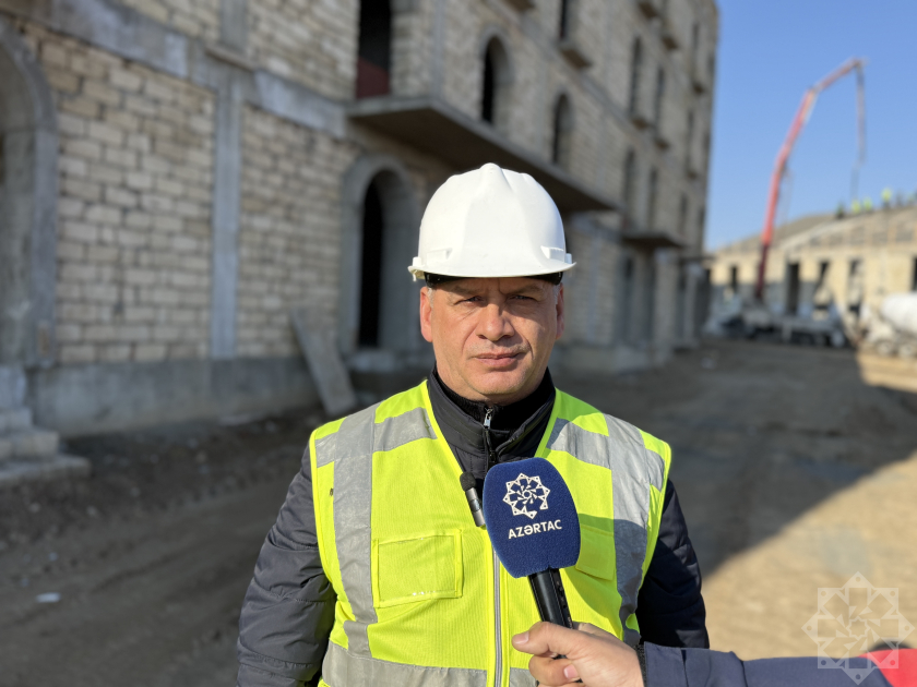 Onun sözlərinə görə, dəmir-beton işləri demək olar ki, yekunlaşıb. Hazırda hörgü və suvaq işləri, elektrik xətlərinin çəkilməsi, santexnik işlər və dam örtüyünün vurulması davam etdirilir. Peşə liseyinin tikintisinin birinci mərhələsinin 2026-cı ilin sonunadək tamamlanması nəzərdə tutulub. Tikinti sahəsində hazırda 40–70 nəfər işçi çalışır.