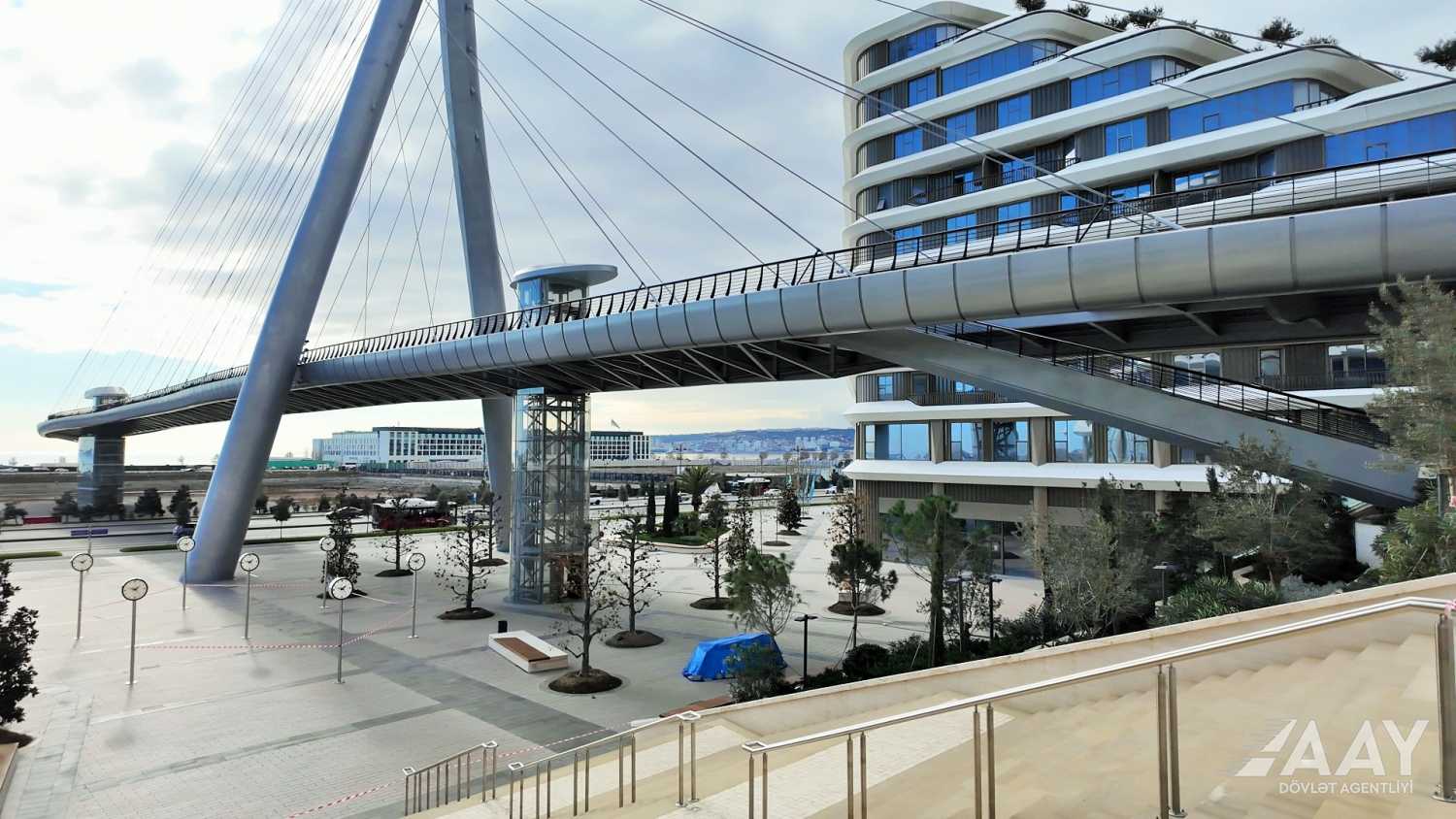 “Bakı Ağ Şəhər” yol infrastrukturunun yenidən qurulması layihəsi çərçivəsində 8 Noyabr prospekti üzərindən Bakı “Ağ Şəhər” layihəsinin Fəvvarələr meydanı parkını və Ağ Şəhər Bulvarını birləşdirən metal konstruksiyalı, müasir arxitekturaya malik yerüstü piyada körpüsü inşa edilib.
