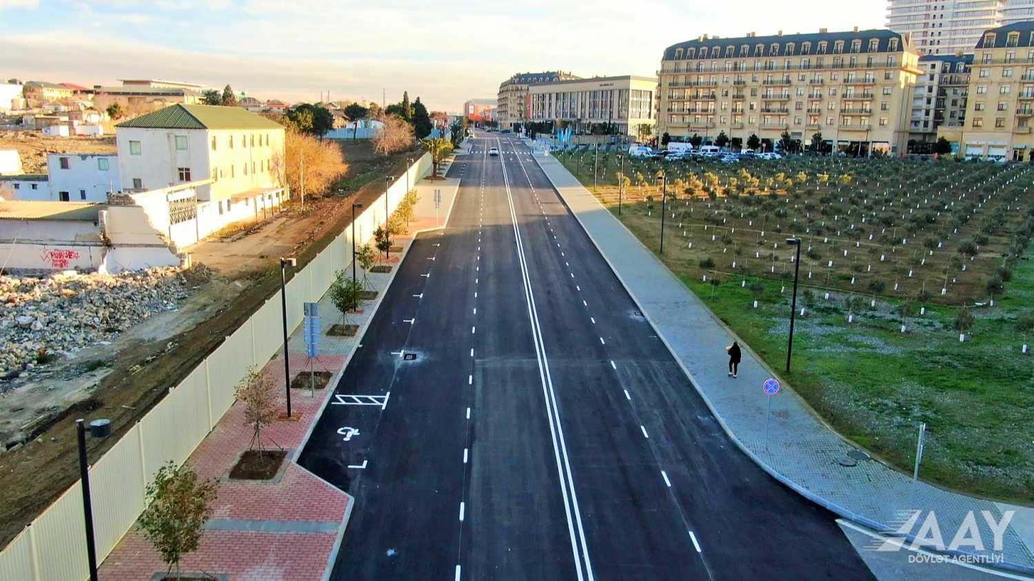 Bununla yanaşı, mövcud piyada səkiləri bərpa olunub, zəruri ərazilərdə yeniləri inşa edilib, 5 metr enində yeni piyada səkiləri tikilib və səki hissələri bəzək daşları (tamet) ilə örtülüb.