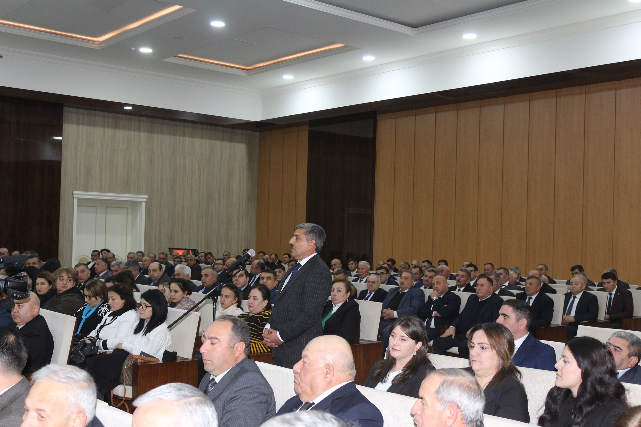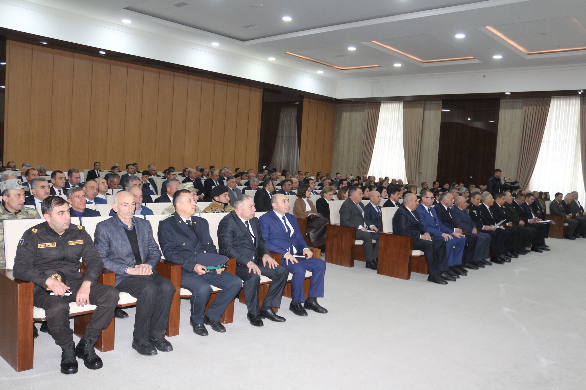 Hüquq mühafizə orqanlarının, həmçinin, idarə, müəssisə, təşkilat rəhbərlərinin və ictimaiyyət nümayəndələrinin iştirak etdiyi tədbirdə rayon icra hakimiyyəti başçısının səlahiyyətlərini icra edən Natiq Nağıyev 2025-ci ilin sosial-iqtisadi inkişafının yekunları və qarşıda duran vəzifələr barədə hesabat məruzəsi ilə çıxış etmişdir.