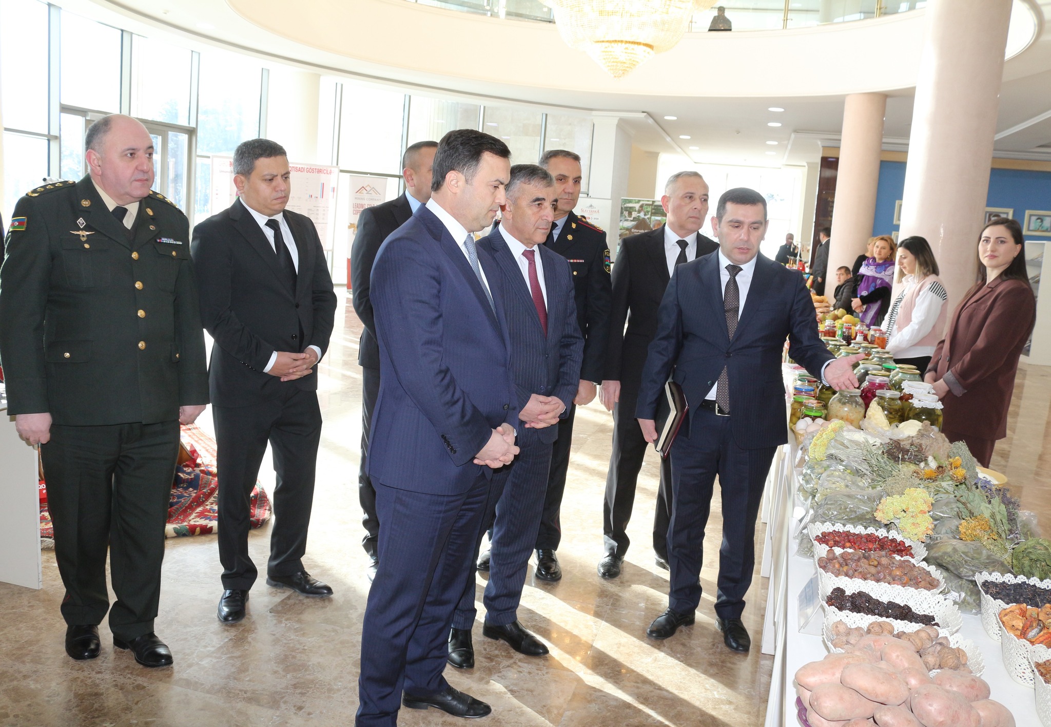 Heydər Əliyev Mərkəzində təşkil olunan tədbirdə yerli müəssisələrin istehsal etdikləri və kənd təsərrüfatı məhsullarından ibarət sərgidə rayonun sosial-iqtisadi göstəriciləri iştirakçılara və qonaqlara təqdim edilmişdir.