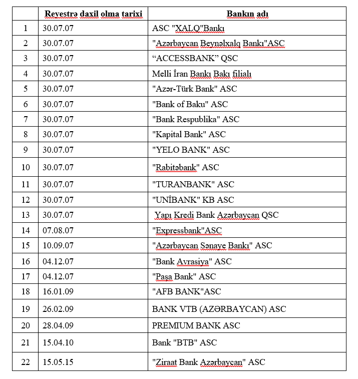 Əmanətlərin Sığortalanması Fonduna üzv bankların reyestrini ictimaiyyətin diqqətinə təqdim edir