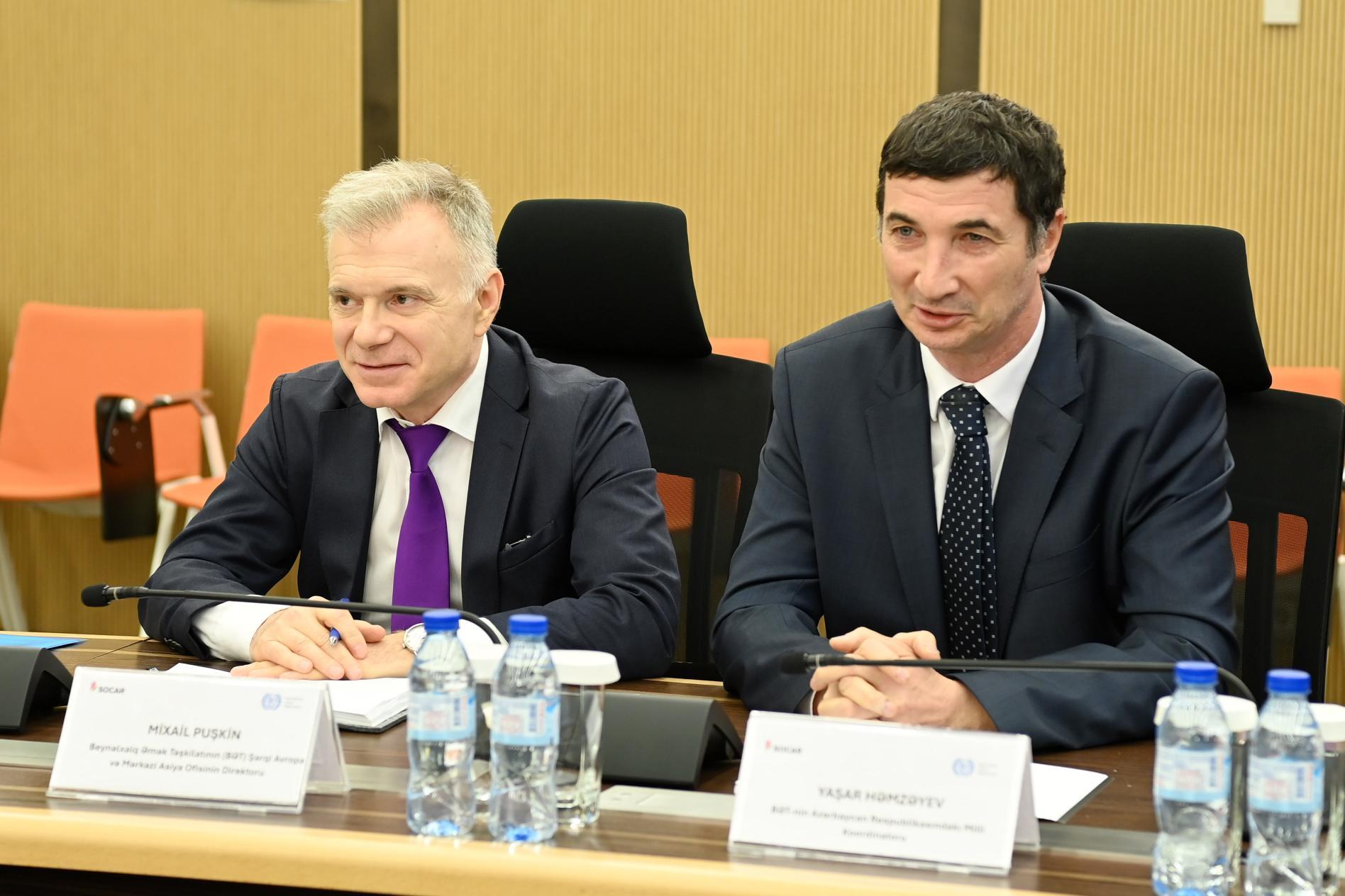 Əmək və əhalinin sosial müdafiəsi nazirinin müavini Hidayət Abdullayev, SOCAR-ın vitse-prezidenti Ziba Mustafayeva və Beynəlxalq Əmək Təşkilatı-nın (BƏT) Şərqi Avropa və Mərkəzi Asiya ofisinin direktoru Mixail Puşkin arasında görüş keçirilib.