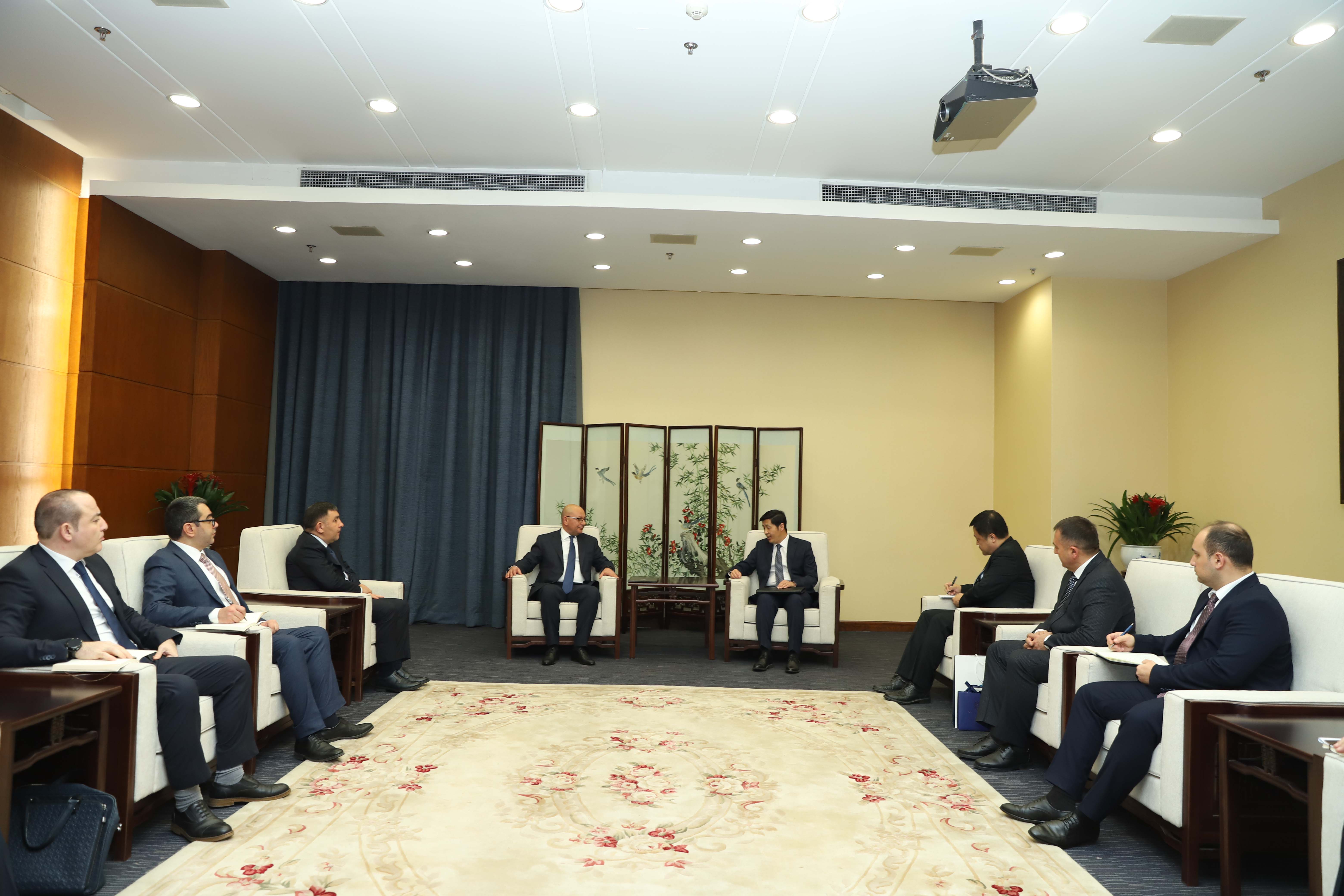 Səfər çərçivəsində ilk görüş Çin Xarici İşlər Nazirliyinin (XİN) Silahlara Nəzarət Departamentinin baş direktoru Sun Xiaobo ilə baş tutub. Görüşdə ölkəmizin Çin Xalq Respublikasındakı fövqəladə və səlahiyyətli səfiri Bünyad Hüseynov da iştirak edib.