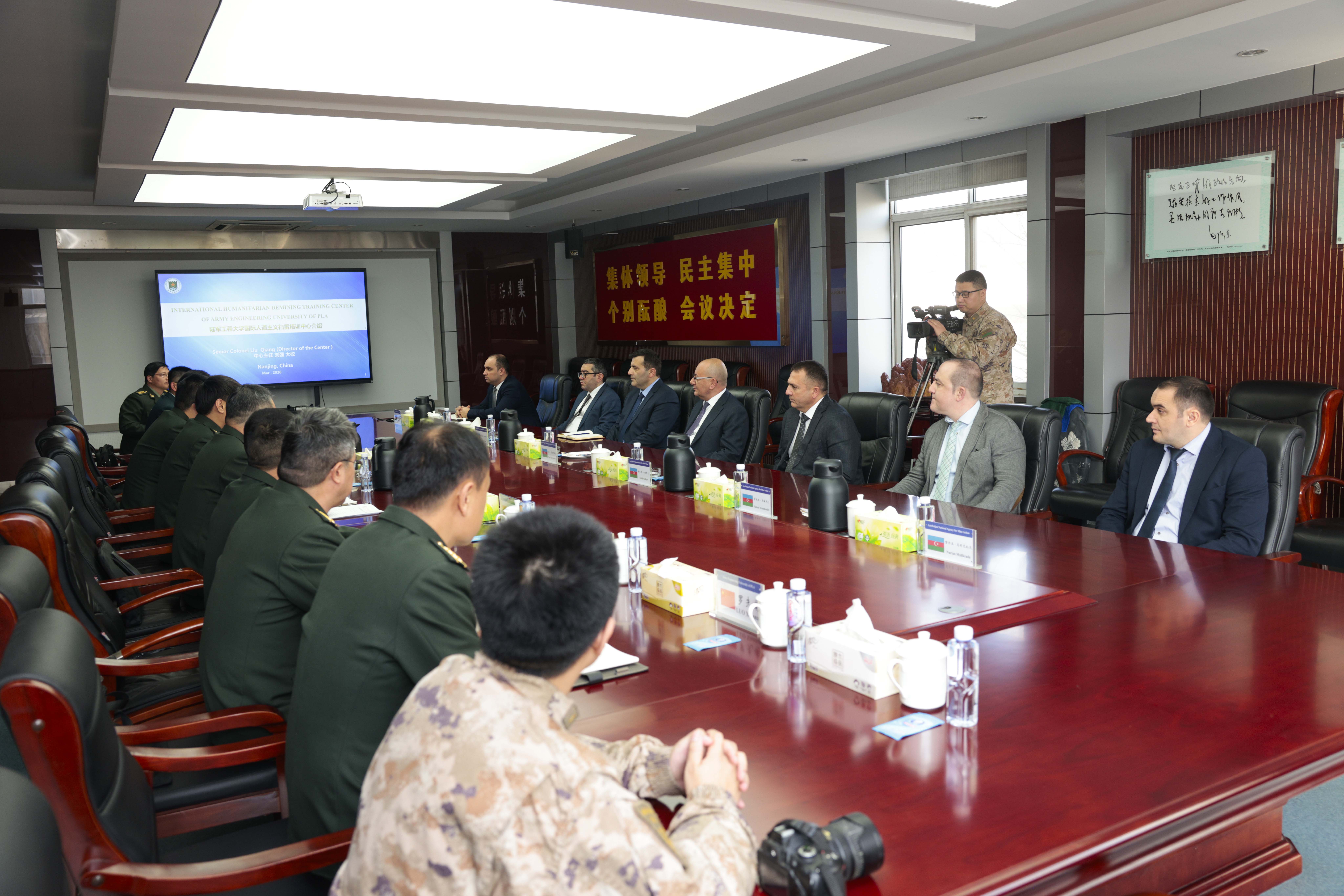 Çin Xalq Respublikasına işgüzar səfər çərçivəsində Azərbaycan Respublikası Minatəmizləmə Agentliyinin İdarə Heyətinin sədri Vüqar Süleymanovun rəhbərlik etdiyi nümayəndə heyəti Nankin şəhərində yerləşən Çin Xalq Azadlıq Ordusunun Quru Qoşunları Mühəndislik Universitetində geniştərkibdə görüş keçirib.