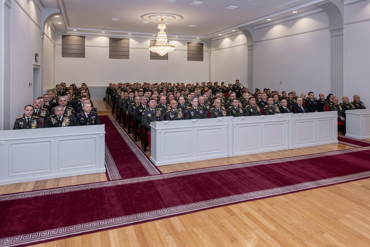 Əvvəlcə Ümummilli Lider Heydər Əliyevin və ölkəmizin suverenliyi, ərazi bütövlüyü uğrunda həlak olmuş hərbi qulluqçuların, eləcə də bütün şəhidlərin əziz xatirəsi bir dəqiqəlik sükutla anılıb.
