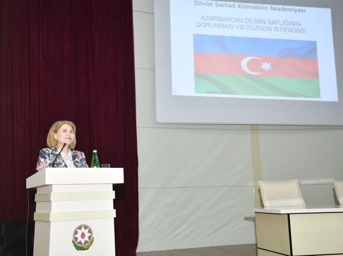 "Azərbaycan dilinin qloballaşdırma şəraitində zamanın tələblərinə uyğun istifadəsinə və ölkədə dilçiliyin inkişafına dair Dövlət Proqramı"nın təsdiq edilməsi haqqında cənab Prezidentin 09.04.2013-cü il tarixli Sərəncamının icrası ilə əlaqədar Dövlət Sərhəd Xidmətinin DSX Akademiyasında “Azərbaycan dilinin saflığının qorunması və düzgün istifadəsi” və “Hərbi təhsil müəsisələrində Azərbaycan dilinin və nitq mədəniyyətinin tətbiqi” mövzularında maarifləndirici tədbir keçirilmişdir.