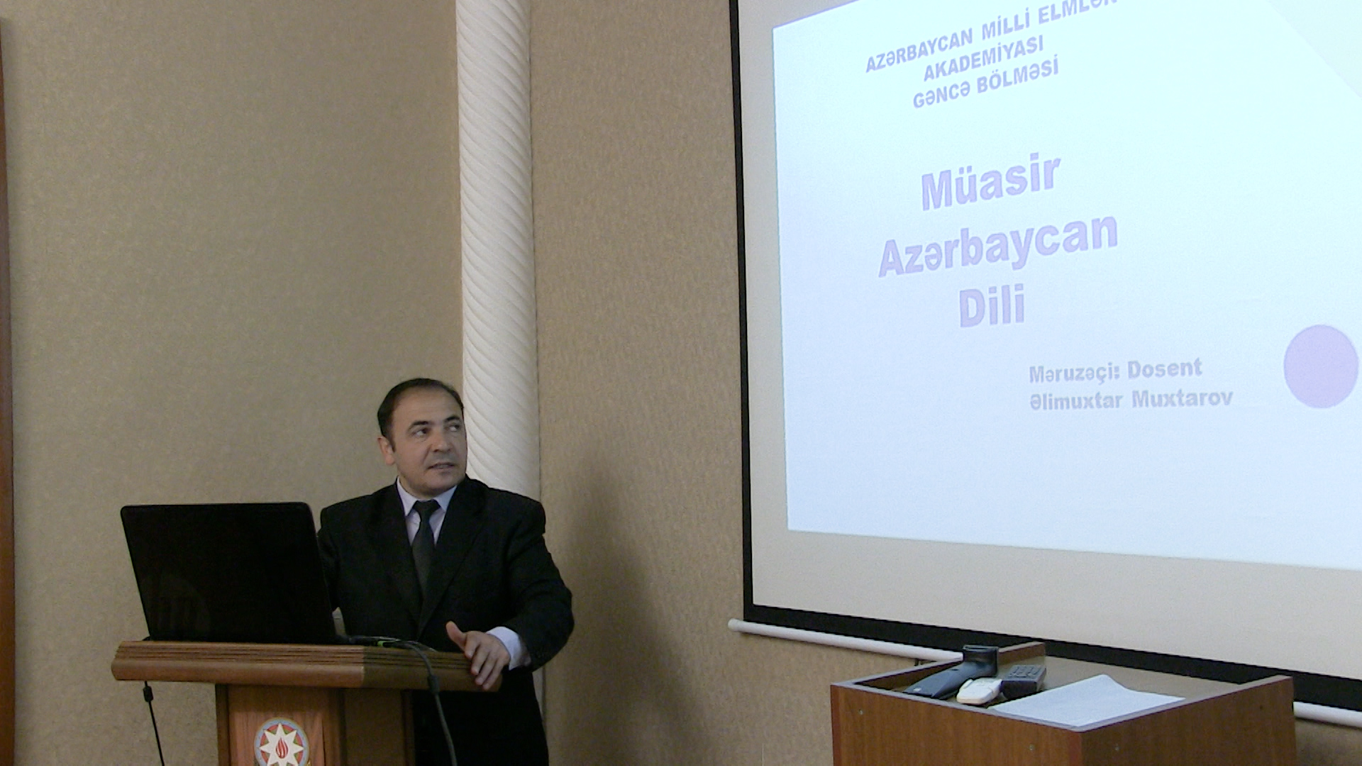 Seminarda daha sonra AMEA-nın Gəncə Bölməsinin elmi işlər üzrə sədr müavini, filologiya üzrə fəlsəfə doktoru, dosent Əlimuxtar Muxtarov çıxış edib. O, “Müasir Azərbaycan dili” mövzusunda geniş bir məruzə təqdim edərək, Azərbaycan dilinin dünyanın ən zəngin dillərindən biri olduğunu qeyd edib. Əlimuxtar Muxtarov, dilimizin keçmişdən bu günə qədər həm klassik, həm də müasir formatlarda inkişaf etdiyini və bu zəngin dilin qorunmasının vacib olduğunu bildirib.