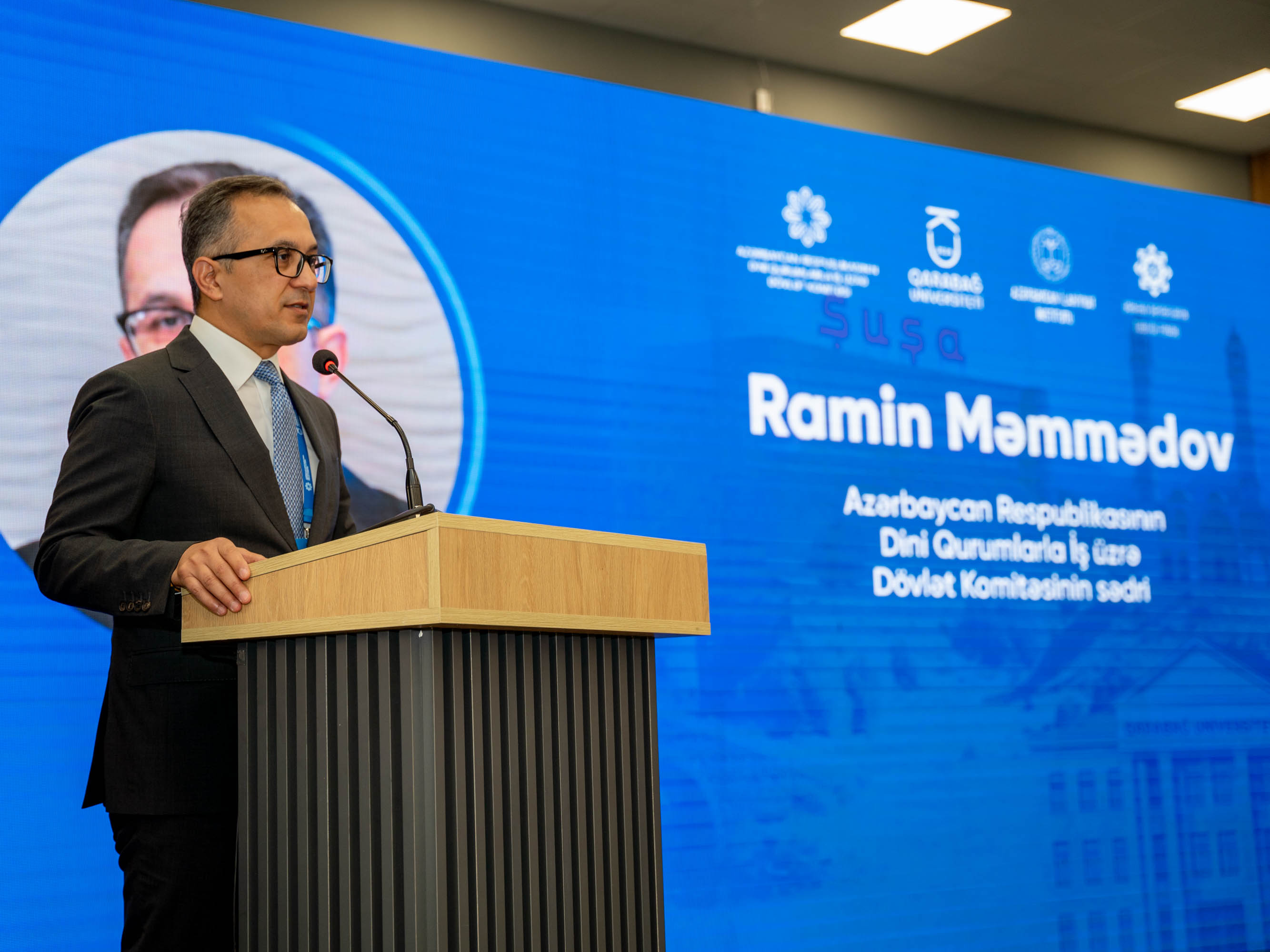 Dini Qurumlarla İş üzrə Dövlət Komitəsinin sədri Ramin Məmmədov Azərbaycan Respublikasının Prezidenti cənab İlham Əliyevin rəhbərliyi ilə Qarabağ və Şərqi Zəngəzurda həyata keçirilən bərpa-quruculuq işlərinin sosial-iqtisadi və siyasi əhəmiyyəti ilə yanaşı, həm də mənəvi məzmunu olduğunu bildirib. Bu prosesin xalqımızın onilliklər ərzində qırılmış qürurunun bərpası olduğunu qeyd edən Komitə sədri deyib ki, Qarabağ Universitetinin yaradılması tarixin yeni bir dövrünün işarəsidir. Azərbaycan xalqı 30 il ərzində dağıdılmış, viran qoyulmuş torpaqları təhsil, mədəniyyət və iqtisadi rifah mərkəzinə çevirir. Qəhrəmanlarımızın uğrunda canlarından keçdiyi ideyaların yeni təhsil ocaqları, mədəniyyət nümunələrinin yaradılması ilə əbədiləşdirildiyini bildirən Ramin Məmmədov vurğulayıb ki, elm və mənəviyyat yenidənqurmanın iki əsas sütunudur. Dini Qurumlarla İş üzrə Dövlət Komitəsi və onun tabeliyindəki qurumların da əsas məqsədi milli həmrəyliyi, dini dözümlülüyü və mənəvi dəyərləri qorumaq, inkişaf etdirmək, gənclərin düşüncəsində bu dəyərlərin möhkəmlənməsinə töhfə verməkdir.