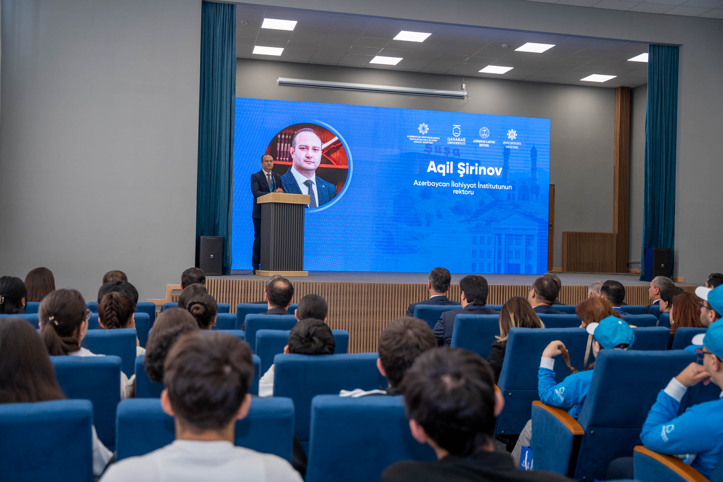 Azərbaycan İlahiyyat İnstitutunun rektoru Aqil Şirinov çıxışında Qarabağın elmi, dini-mənəvi irsinin qorunması və yeni nəslə aşılanmasının vacibliyini qeyd edib. Dini Qurumlarla İş üzrə Dövlət Komitəsi, onun tabeliyində fəaliyyət göstərən Mənəvi Dəyərlərin Təbliği Fondu və Azərbaycan İlahiyyat İnstitutunun öz fəaliyyətlərində bu məqama xüsusi diqqət yetirdiyini bildirib. Mənəvi Dəyərlərin Təbliği Fondunun İnstitutun yüksək elmi göstəriciləri olan tələbələri üçün ayırdığı mükafatlardan ikisinin məhz Qarabağın elmi-mənəvi tarixi ilə bağlı olduğunu vurğulayıb. A.Şirinov həmçinin, Qarabağ Universiteti ilə Azərbaycan İlahiyyat İnstitutu arasında əməkdaşlığın genişləndirilməsinin əhəmiyyətini qeyd edib.