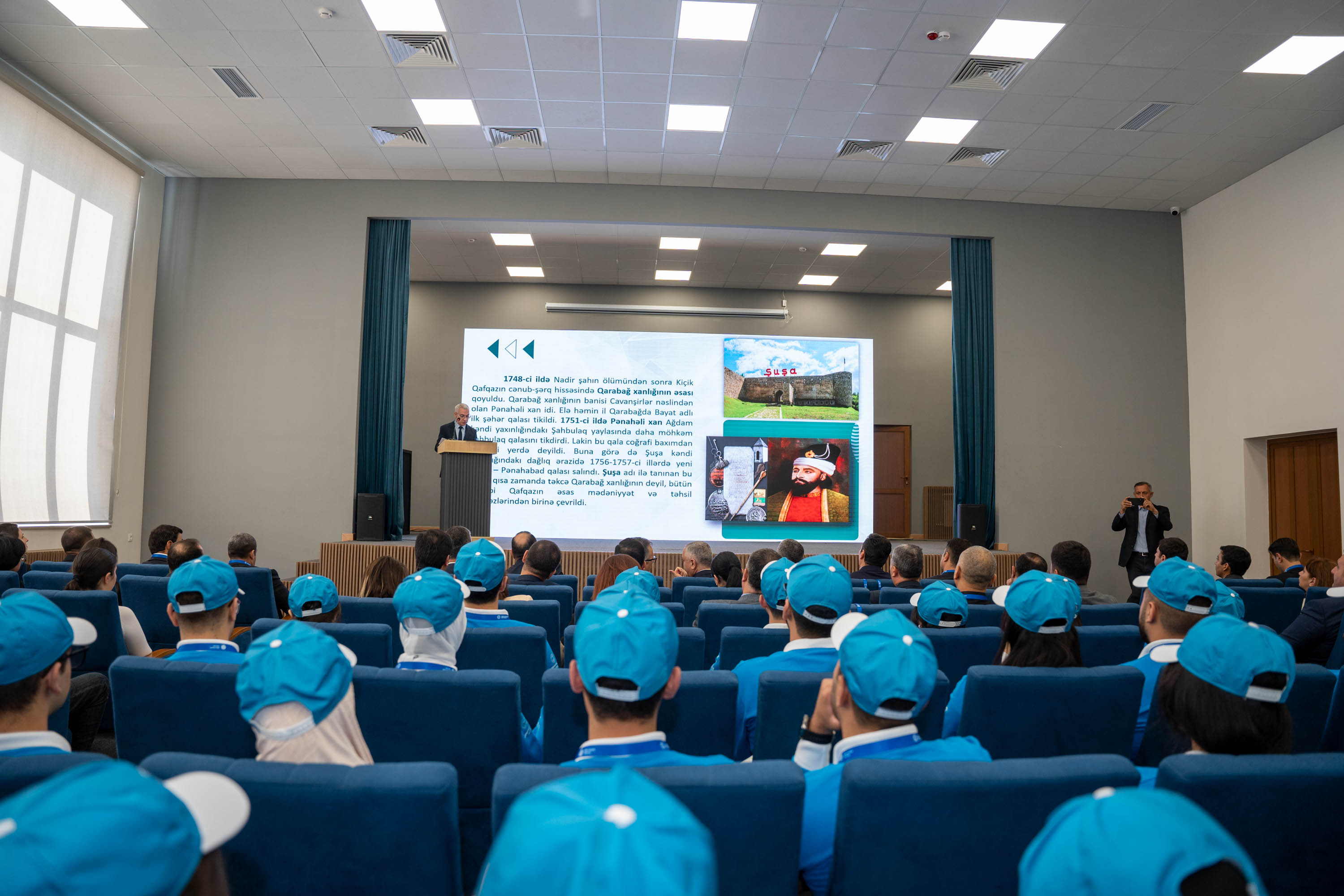 Oktyabrın 13-də Qarabağda Vətən müharibəsində qazanılmış Zəfərin 5 illiyinə həsr edilmiş “Mənəvi dəyərlər” həftəsi çərçivəsində Qarabağ Universitetində “Mənəvi dəyərlər” günü keçirilib.