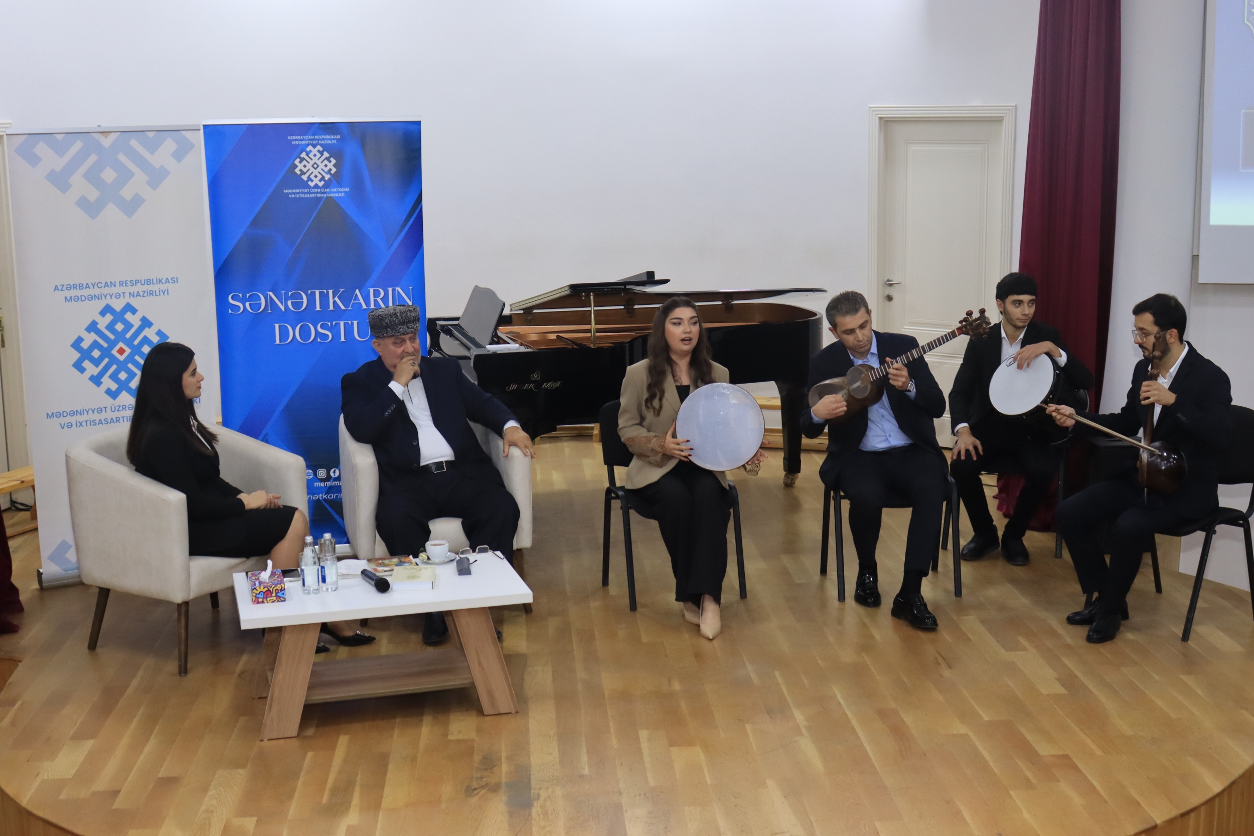 İnteraktiv formatlı görüşdə İncəsənət fakültəsinin müəllimləri – tarda Bəhruz Zeynalovun, kamançada Fərid Babayevin, nağarada tələbə İlqar Süleymanlının müşayiəti ilə bu fakültədə təhsil alan Xədicə İsmayılova “Mahur-hindi”, İsmayıl İsmayılov isə “Rahab” muğamlarını səsləndiriblər.