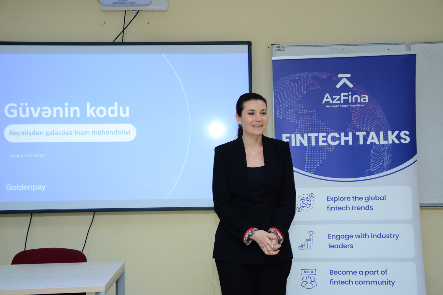 Seminarda “QoldenPey” ASC-nin kommersiya direktoru Səbinə Əmiraslan müasir dövrdə maliyyə texnologiyalarının inkişafı və rəqəmsallaşmanın yaratdığı yeni imkanlar barədə tələbələrə məlumat verib. O, çıxışında nağd kağız əskinaslardan rəqəmsal valyutalara keçid prosesini, bu keçidin iqtisadiyyata təsirini ətraflı izah edib, xüsusilə rəqəmsal maliyyə sistemlərində etimad amilinə toxunub.
